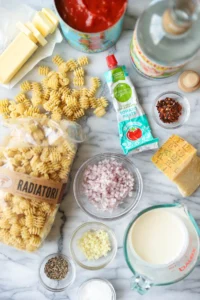 It’s creamy. It’s bright. It’s quick. It’s easy. And it’s seriously got EVERYTHING you need – pasta, vodka, butter and fresh Parm. Do we need anything else?